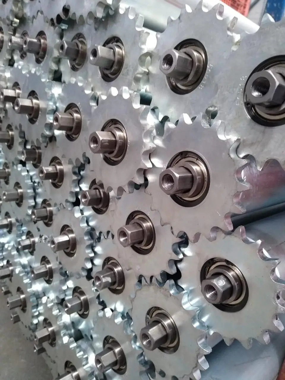 Los rodillos con ruedas dentadas son ideales para transportadores de pallets o de servicio pesado. Se pueden suministrar con ruedas dentadas simples para accionamientos tangenciales o ruedas dentadas dobles para accionamientos de rodillo a rodillo. Las ruedas dentadas pueden soldarse al exterior de los tubos o instalarse en el exterior a través de un inserto soldado de acero torneado. Son una opción ideal para sistemas de transporte de cargas pesadas en la industria, como plantas de producción, almacenes y centros de distribución.